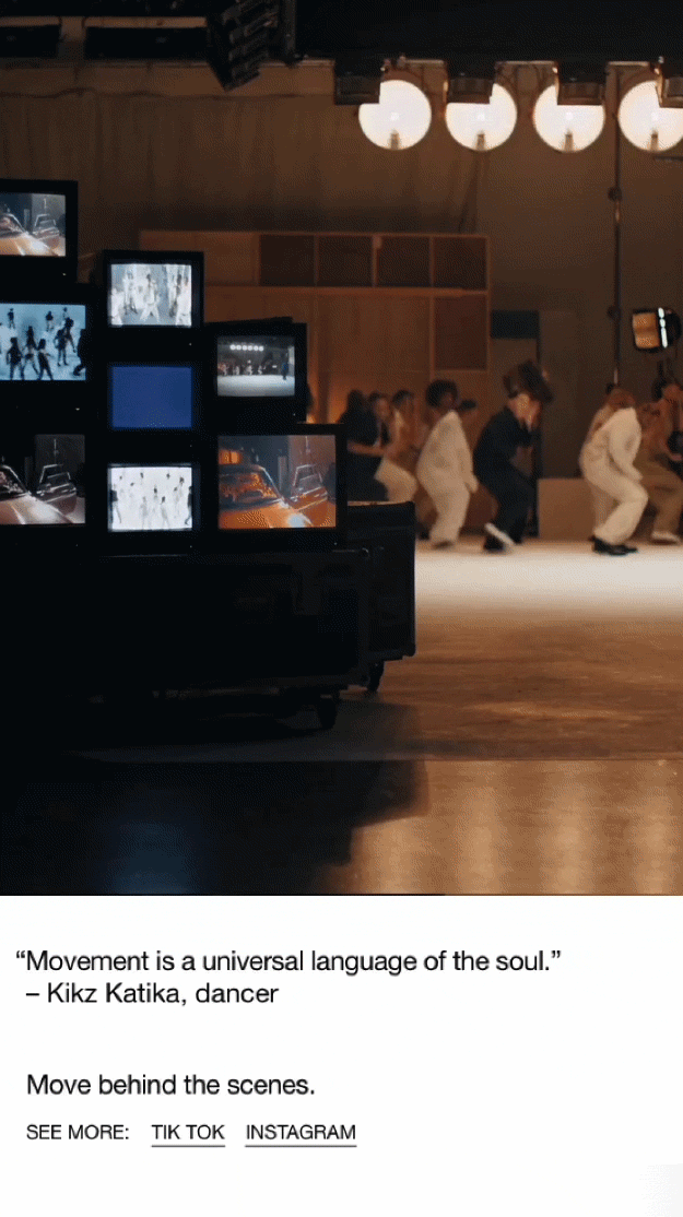 Video integration throughout the experience and storytelling sections with dancer quotations.
